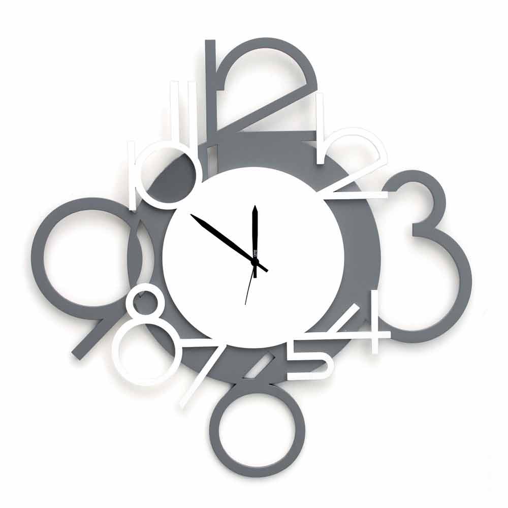 Große Design Wanduhr aus weißem und grauem Holz, speziell hergestellt in Italien.