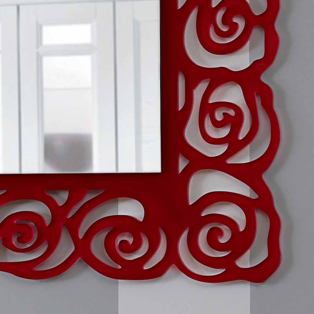 Roter Methacrylatspiegel elegant und modern zugleich.