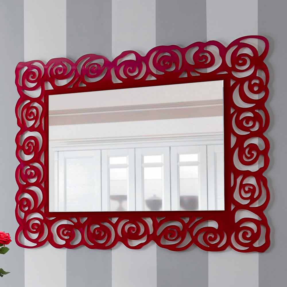 Moderner und eleganter rechteckiger Designspiegel mit rotem Plexiglas-Rosenrahmen, hergestellt in Italien.