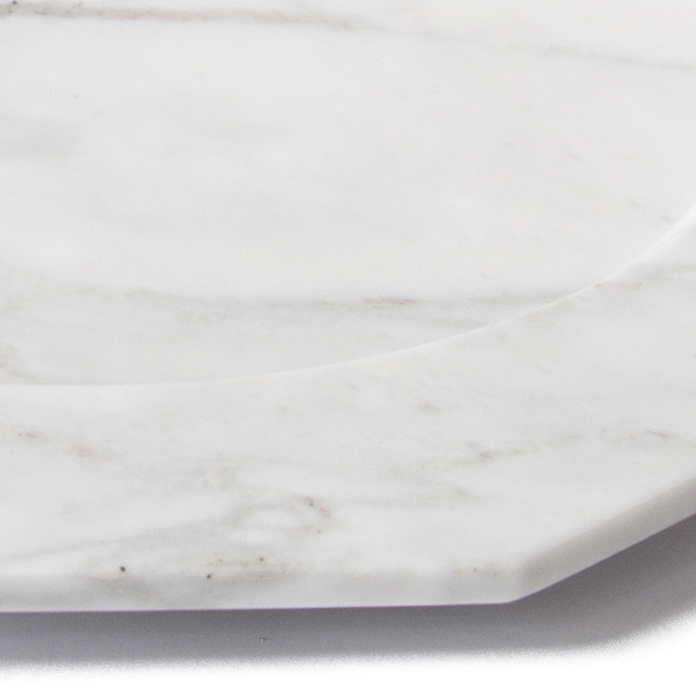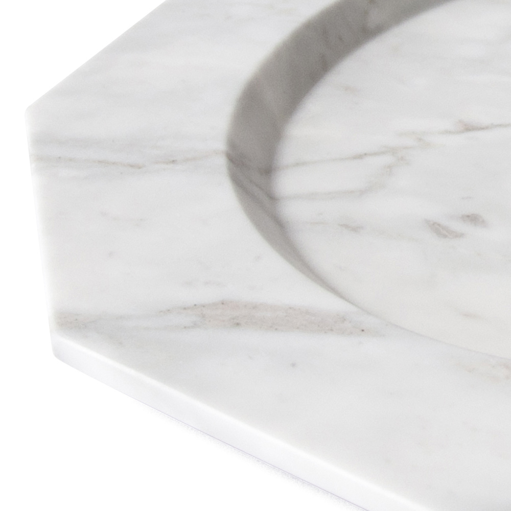 Ein raffiniertes und raffiniertes Design , das dank seiner Wesentlichkeit, die durch den satinierten Arabescato-Carrara-Marmor, aus dem es hergestellt wird, unterstrichen wird, zum Protagonisten in der Umgebung des Reiseziels werden kann.