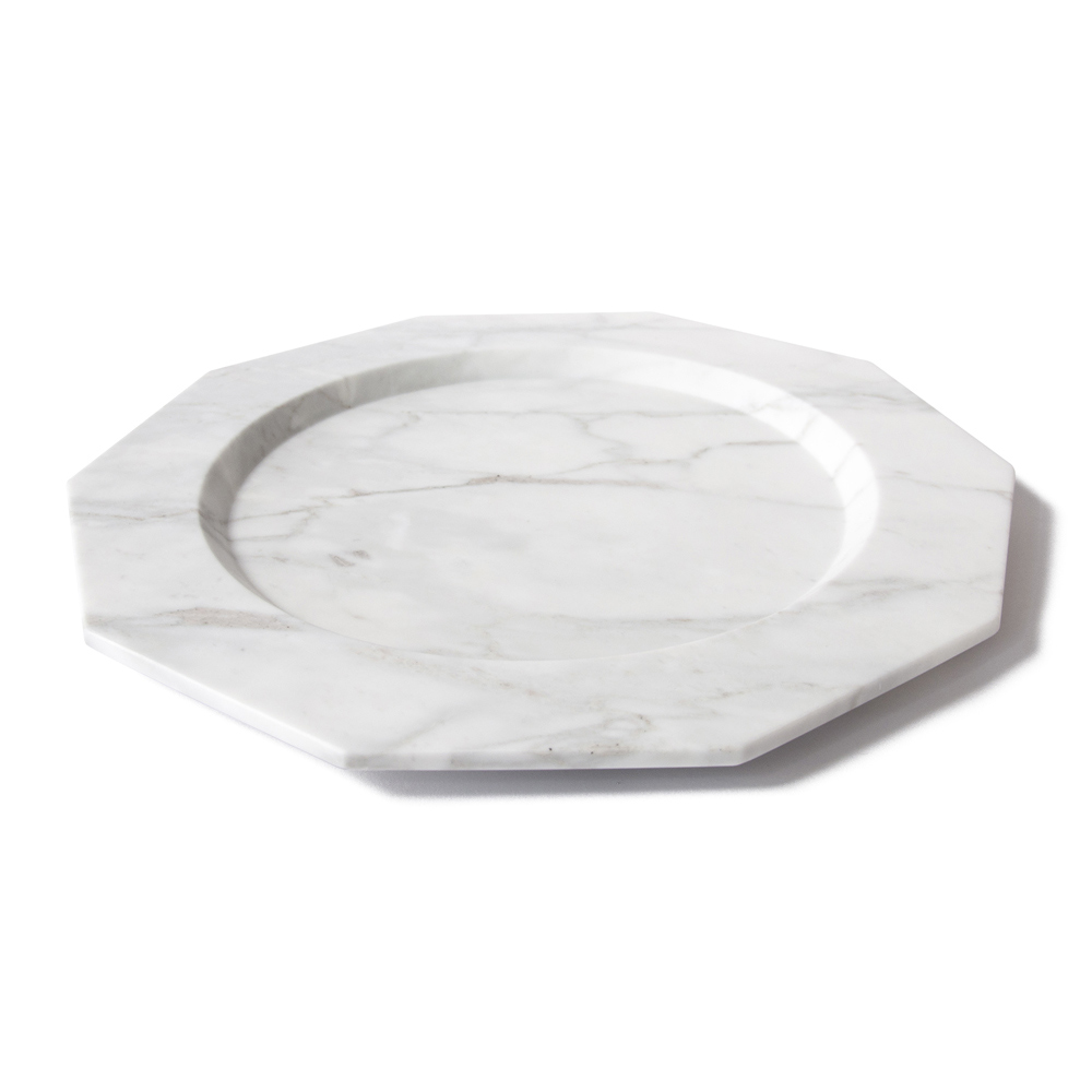 Flacher Teller aus satiniertem Arabeskenmarmor, Design made in Italy.