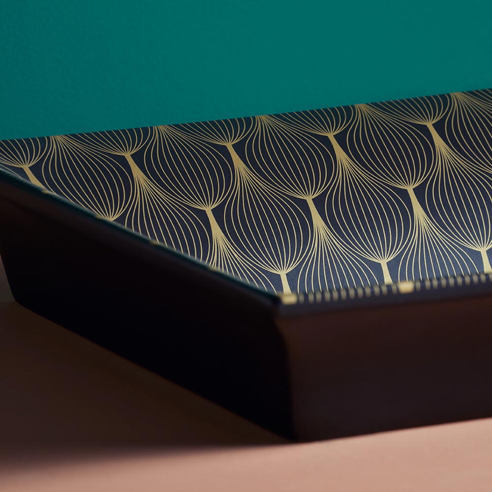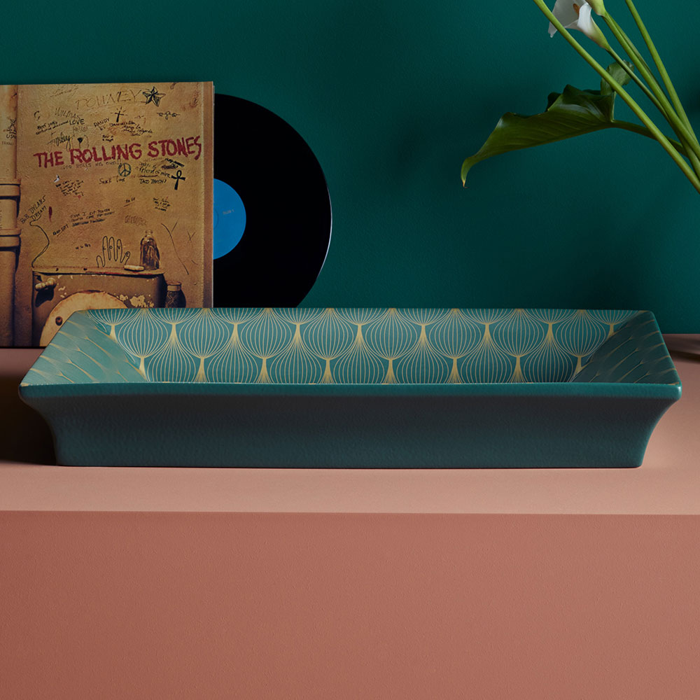 - Innenstruktur in mattem Smaragd und Gold, außen in mattem Smaragd-Email