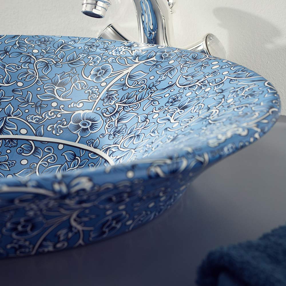 in Italien hergestellt. Raffiniertes und elegantes Waschbecken, das der Badezimmerumgebung eine
