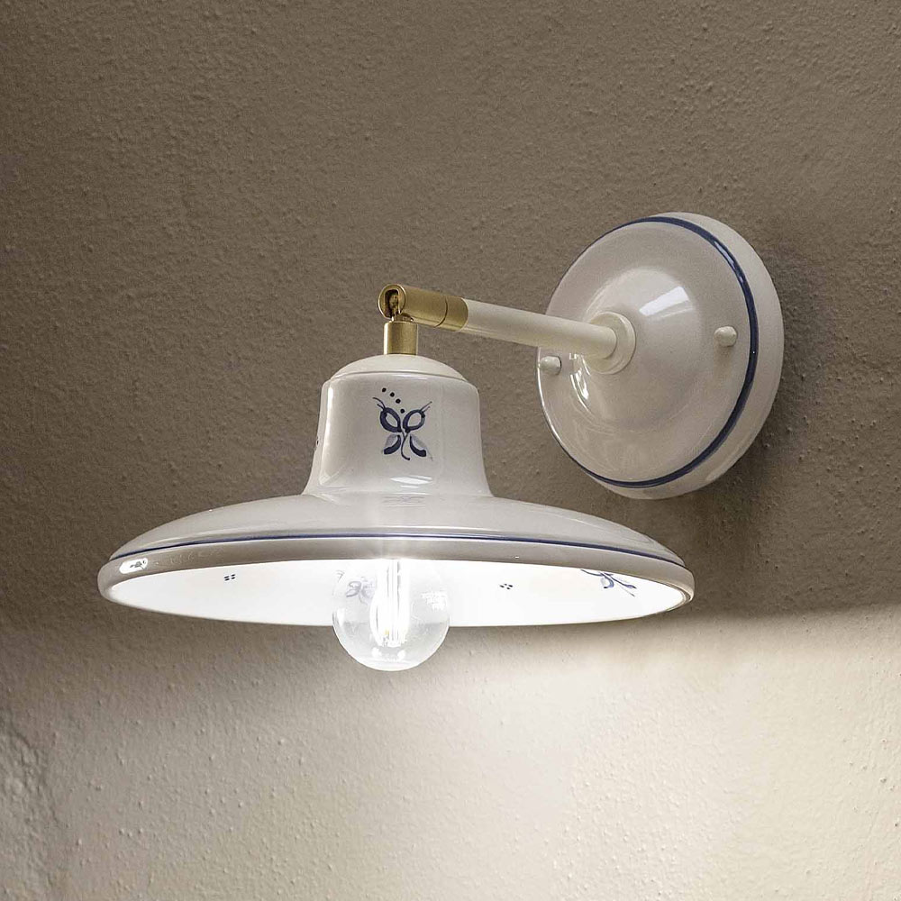 Handverzierte Wandlampe aus Eisen und Keramik, hergestellt in Italien von Ferroluce.