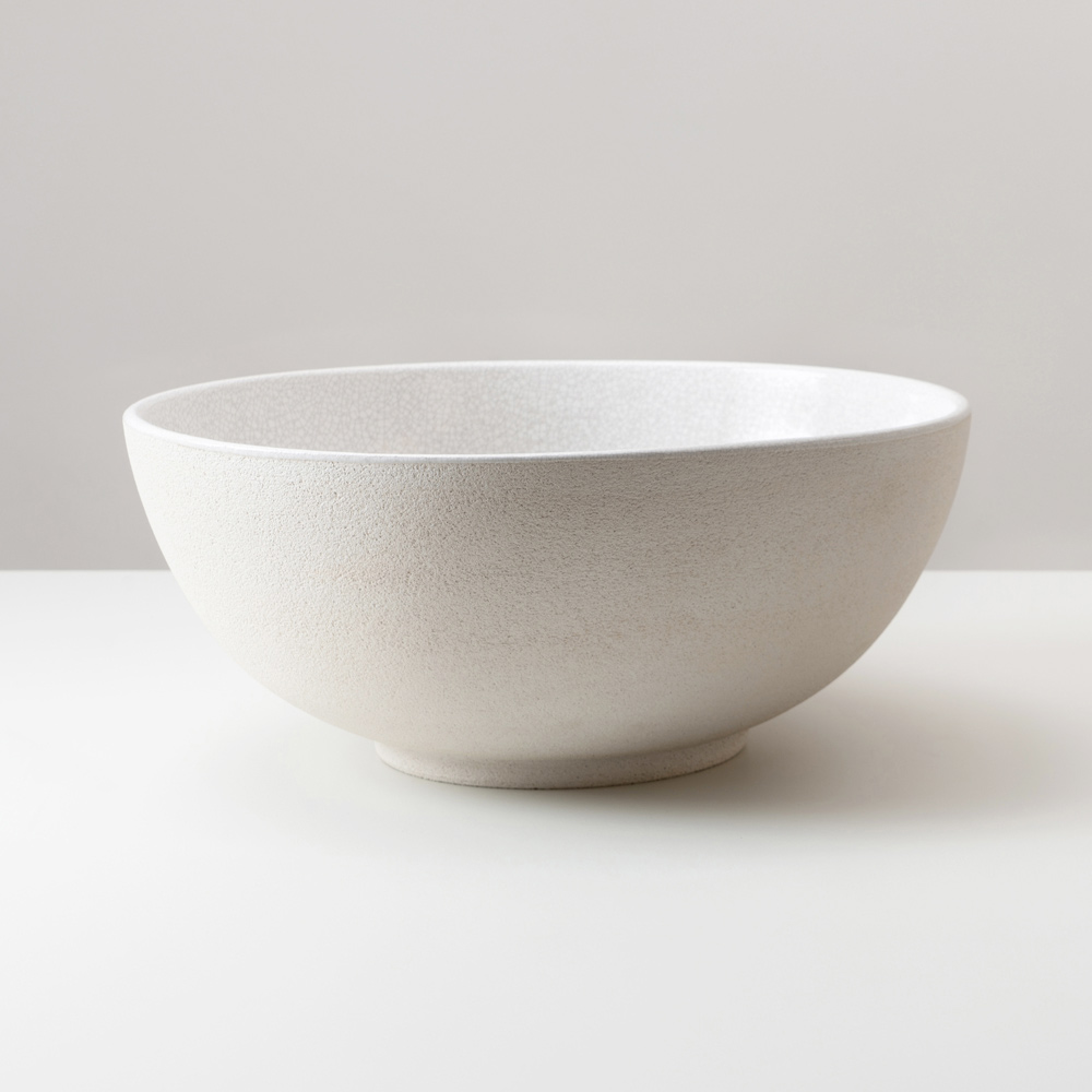 • Glänzend weißer Emaille mit innenliegendem Craquelé-Effekt und außenliegender natürlicher Oberfläche