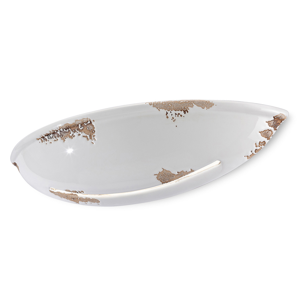Handgefertigte Halbmond-Industriewandlampe aus Keramik und Metall, hergestellt in Italien von Ferroluce.