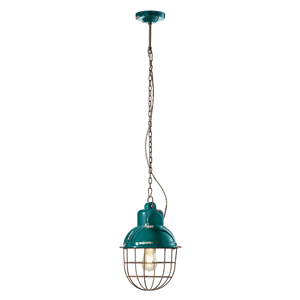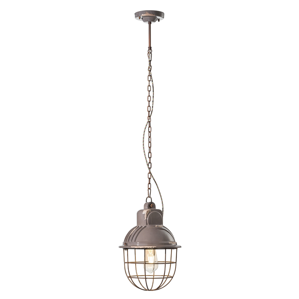 Hängelampe aus Keramik und Eisen mit Gitter, verschiedene industrielle Ausführungen, hergestellt in Italien von Ferroluce.