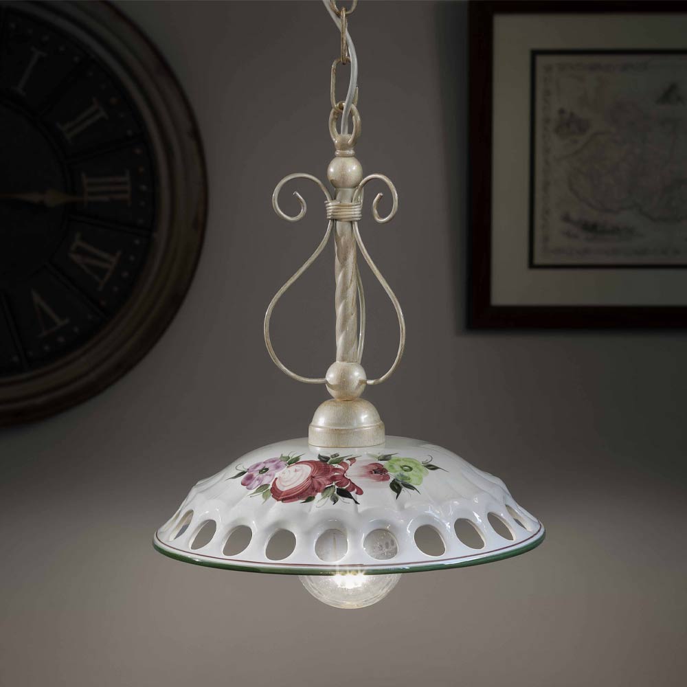 Deckenleuchte aus Metall und handgefertigter Keramik mit Bändern, hergestellt in Italien von Ferroluce.