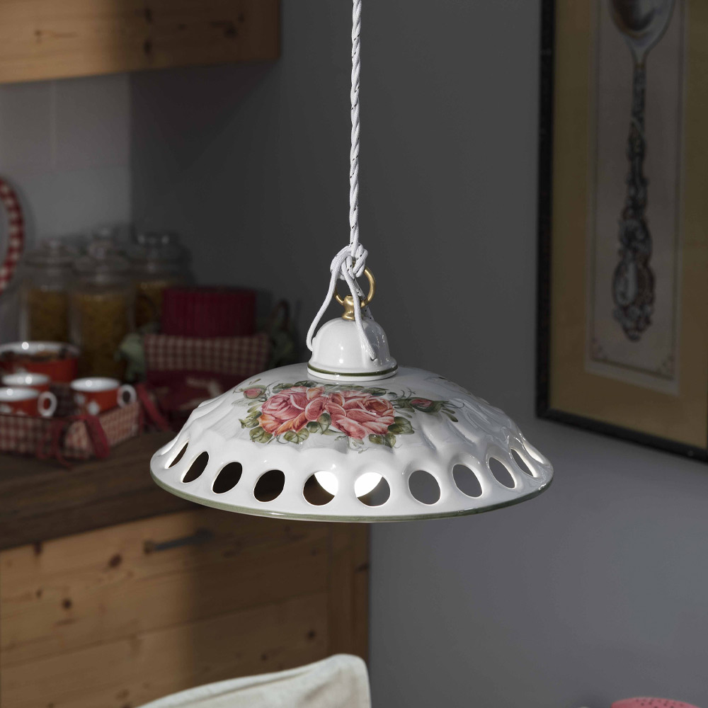 Hängelampe aus Metall und handgefertigter Keramik mit Bändern, hergestellt in Italien von Ferroluce.