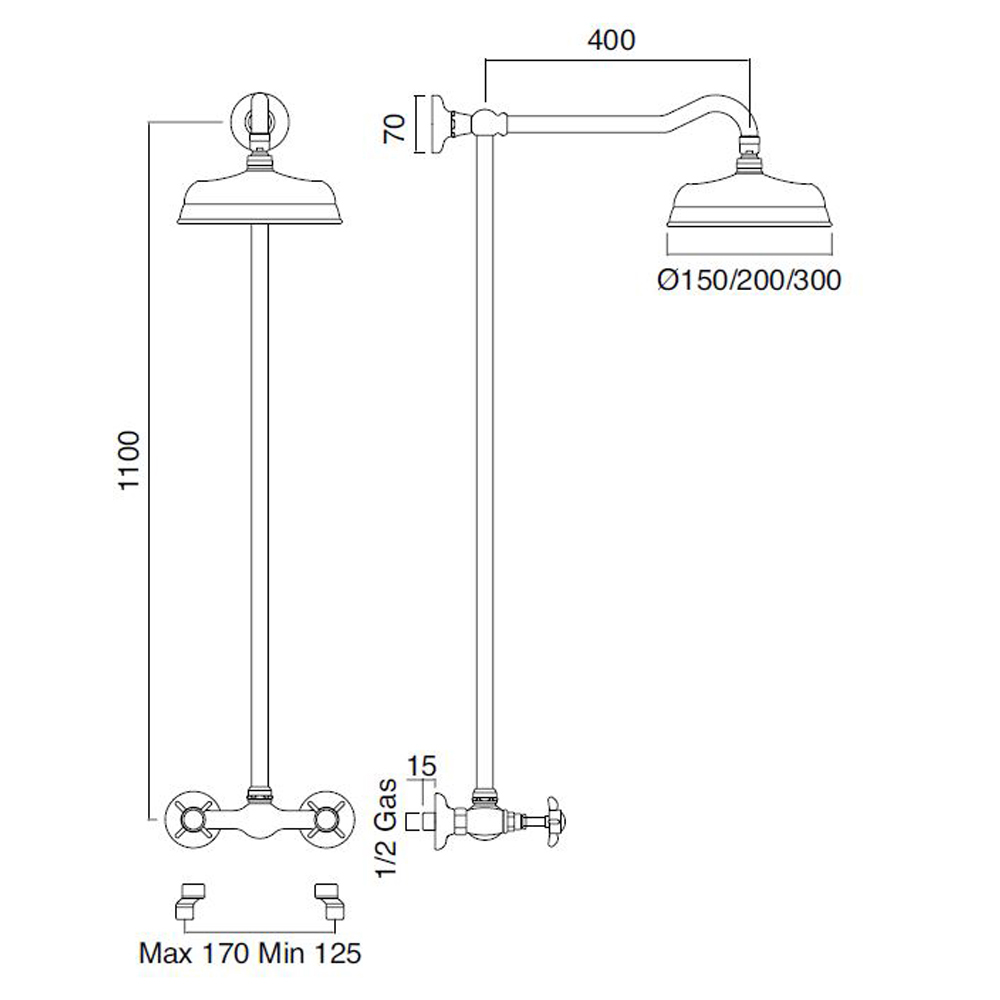 Wandbrausegarnitur handgefertigtes Messing klassischer Stil hergestellt in Italien.