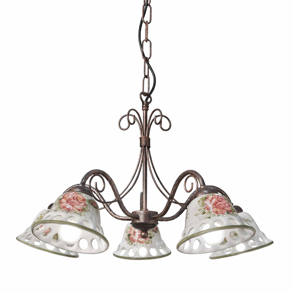 Kronleuchter aus Metall und handgefertigter Keramik mit Bändern, hergestellt in Italien von Ferroluce.