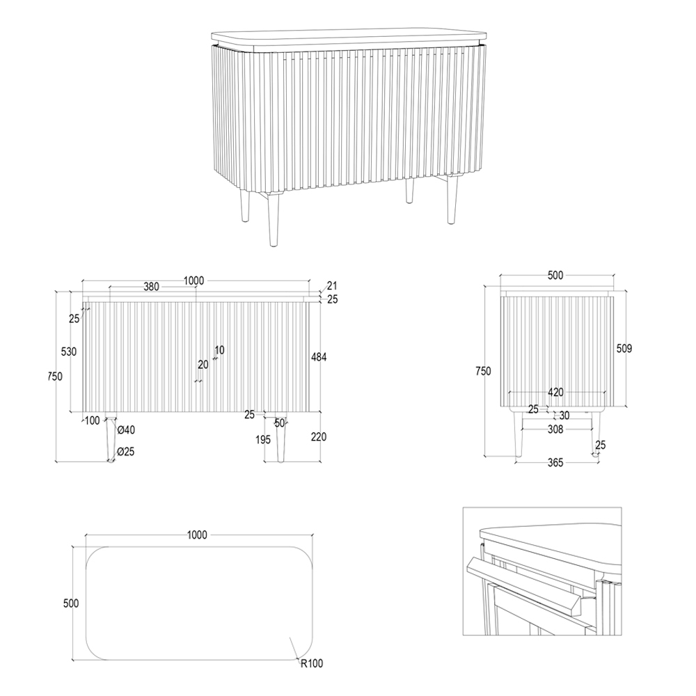 Technische Hinweise: Der Schrank bietet Platz für ein oder zwei WASCHBECKEN, die frei auf der Schrankoberfläche positioniert werden können. Die Möbel werden vor dem Versand nicht gebohrt. Die Rückseite des Schrankes ist mit einer Rückenlehne versehen, daher müssen Öffnungen für die hydraulischen Anschlüsse vorbereitet werden.
