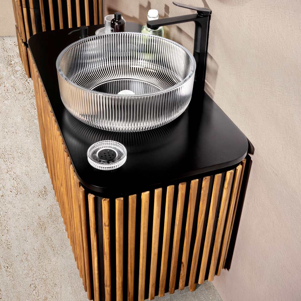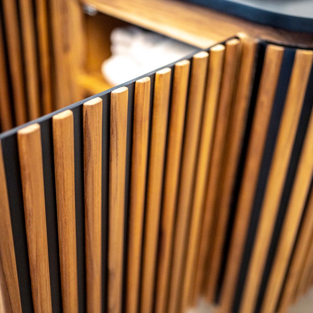 Handgefertigter Badezimmerschrank aus massivem Teakholz und Mahagoni – Heliconia