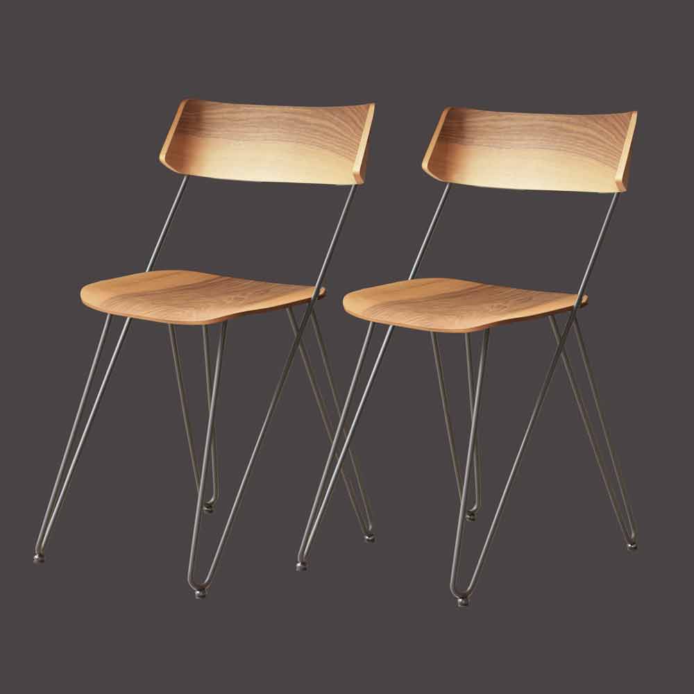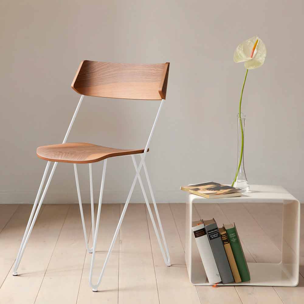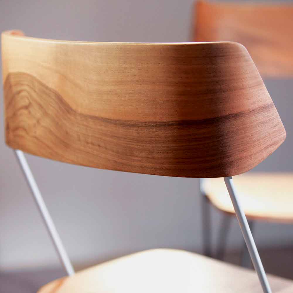 Einfacher und moderner Stuhl für Esszimmer oder Küche, handgefertigt in Italien mit Stahlkonstruktion und Sitz und Rückenlehne aus Walnussholz .