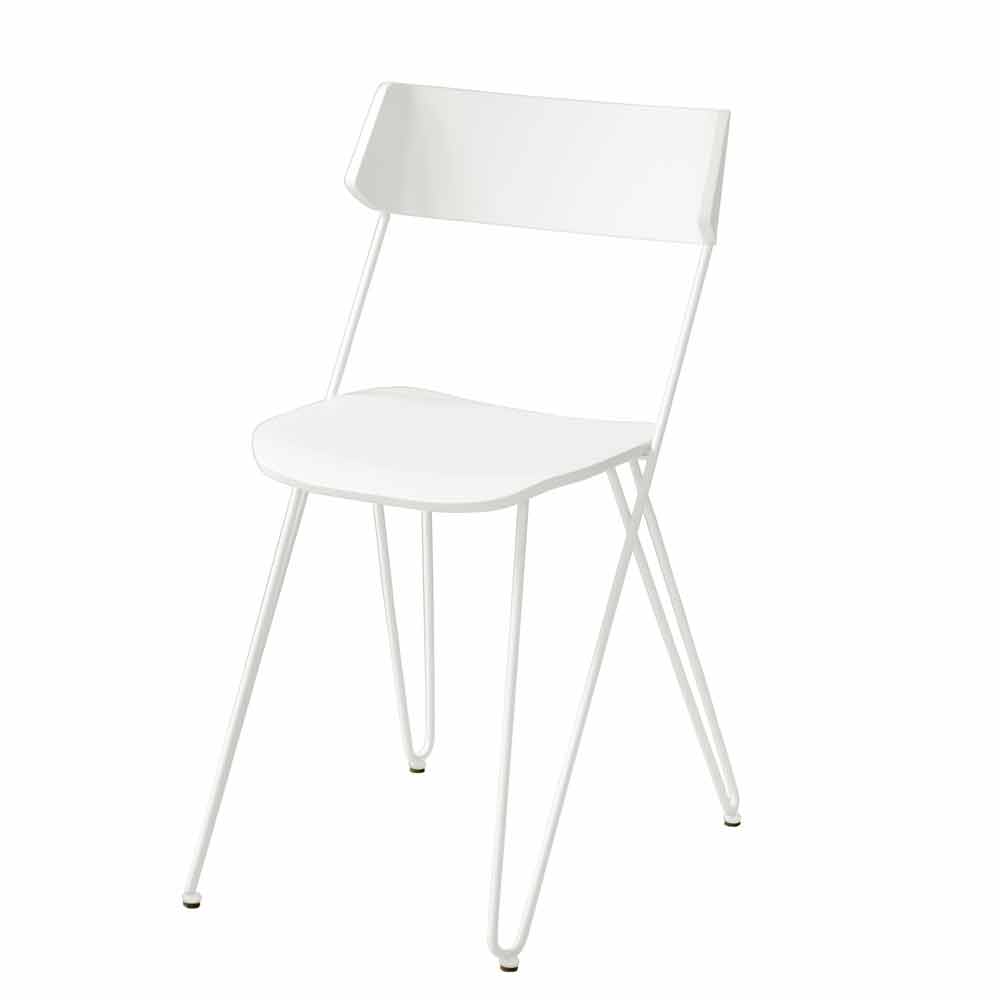 Eine innovative Idee, wenn auch in ihrer Einfachheit. Was die Ästhetik auszeichnet, ist die Besonderheit der röhrenförmigen Beine, die das Gefühl eines Drucks nach oben erzeugen, indem sie den Sitz sanft stützen und die Illusion einer Rückenlehne erzeugen, die zu schweben scheint. Das schlanke Gestell und die Wesentlichkeit der Formen machen ihn zu einem äußerst vielseitigen Stuhl, der die Einrichtung seiner Räume nüchtern und diskret bereichern kann und gleichzeitig eine perfekte Harmonie der Stile und eine warme und einladende Atmosphäre schafft.