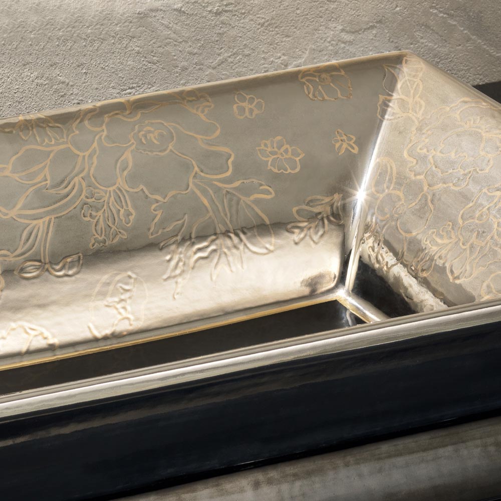 elegante und raffinierte Note zu verleihen, die in ihrer Art einzigartig ist. Es handelt sich um ein Waschbecken mit großer optischer Wirkung, das zum Protagonisten des Raumes wird und dank der