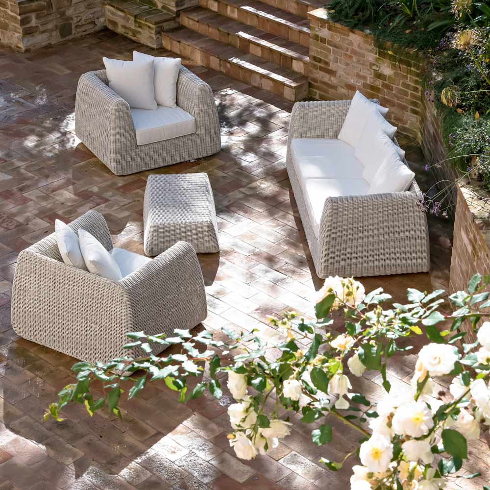 Das raffinierte Design , die sehr hohe Qualität der Materialien und seine geschwungenen Formen machen ihn perfekt für die Innen- und Außeneinrichtung. Dank der Verwendung spezieller hochwertiger Materialien hat diese Outdoor-Lounge dank der Zertifizierung der gewebten Faser keine Angst vor schlechtem Wetter und Temperaturschwankungen.