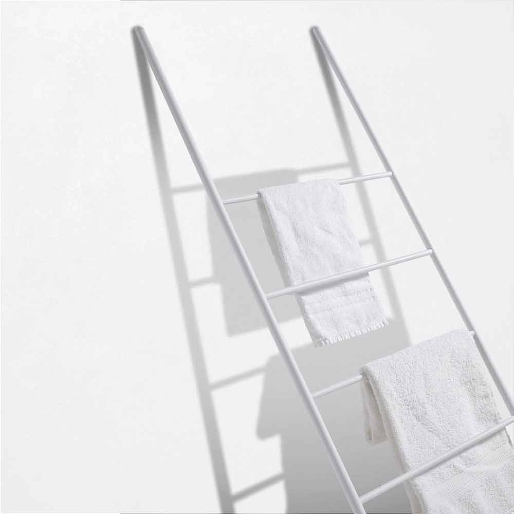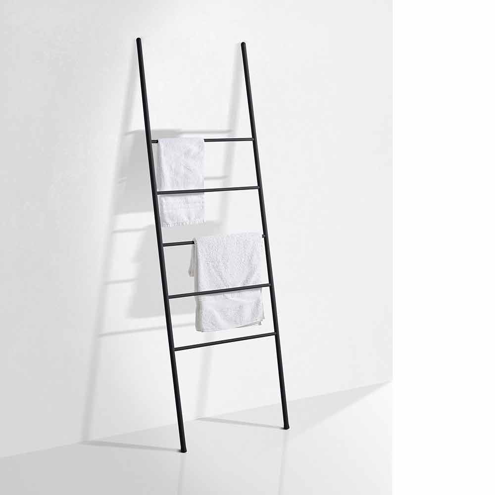 Badezimmer-Handtuchleiter im modernen Design aus weißem oder schwarzem Metall.