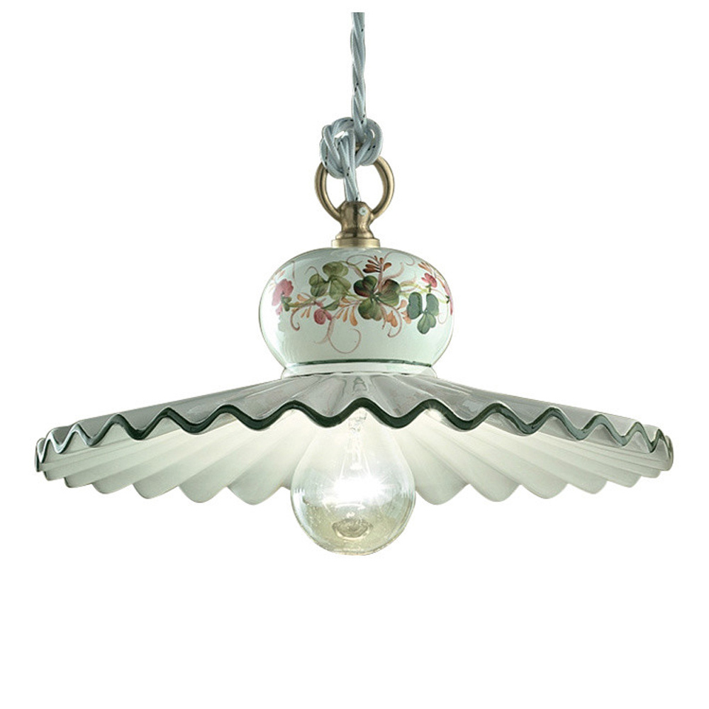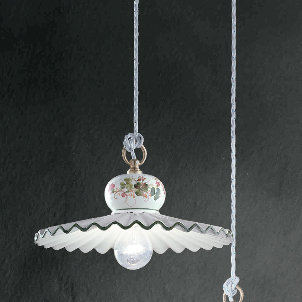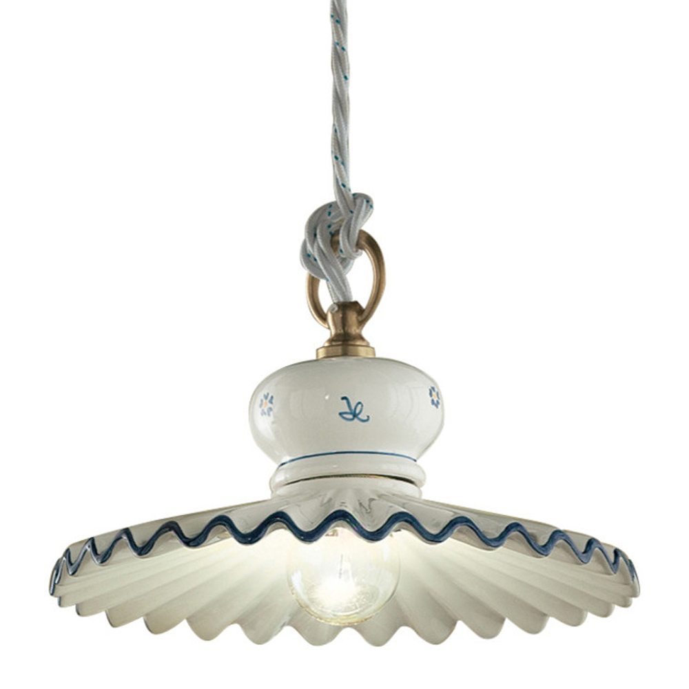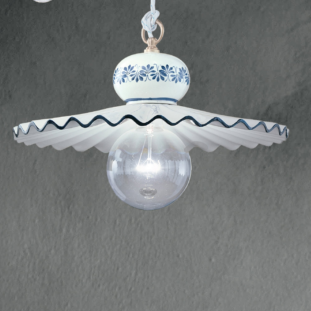 Handgefertigte Hängelampe aus Metall und handbemalter Keramik, 3 Größen, hergestellt in Italien von Ferroluce.