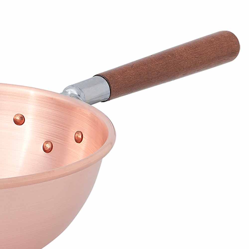 Bastardella aus massivem mattiertem Kupfer und Holzgriff, 30 cm Halbkugel made in Italy.