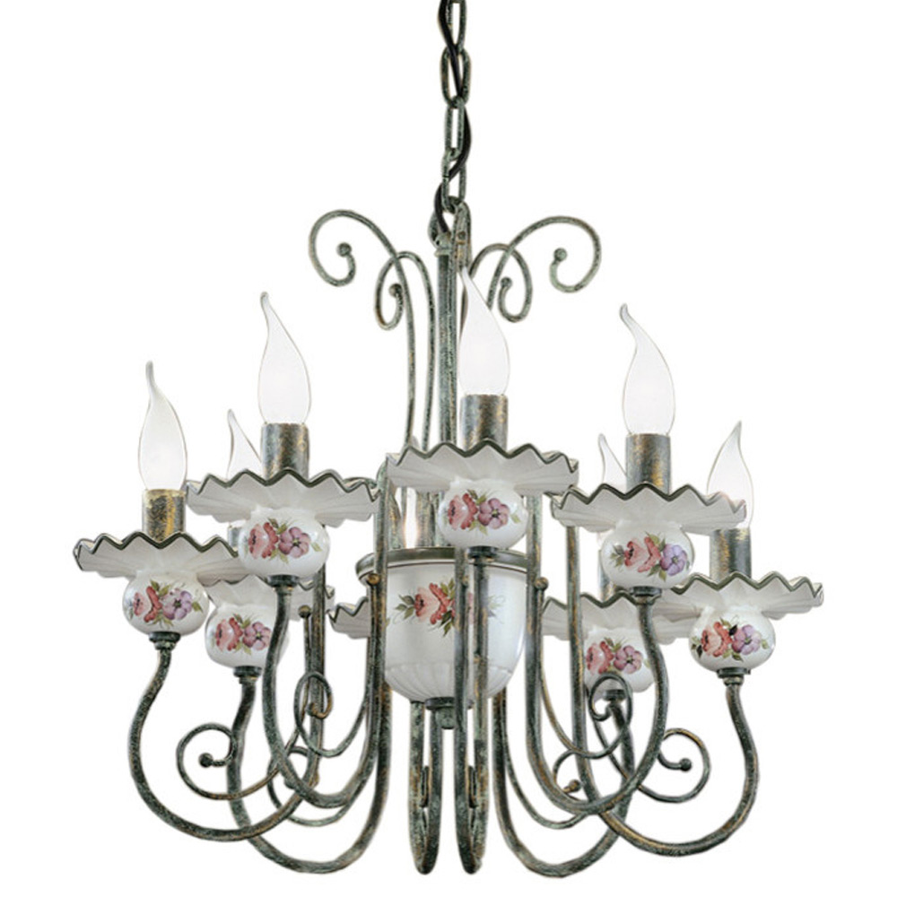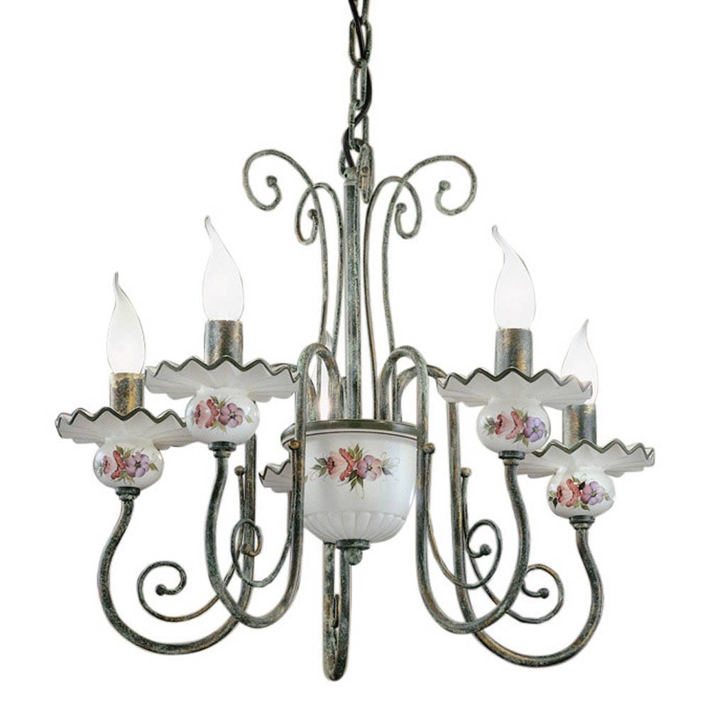 Handgefertigter Kronleuchter aus Messing und handbemalter Keramik, 3 Größen, hergestellt in Italien von Ferroluce.