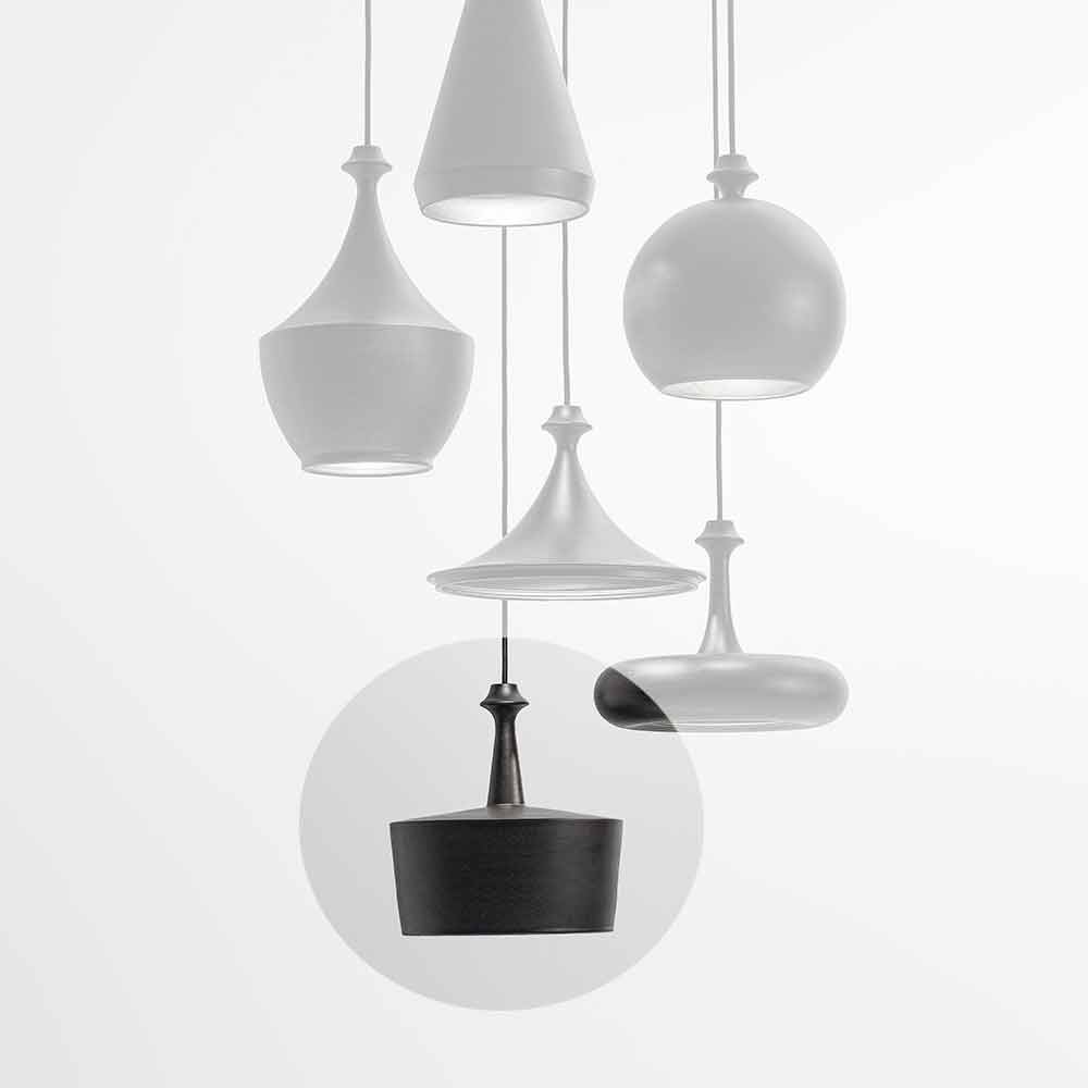 Es spielt mit Materialien und Formen und schafft individuelle und einzigartige Kompositionen: Eine runde oder lineare Mehrfachrosette und dezentrale Elemente aus antikem Messing stehen zur Verfügung.