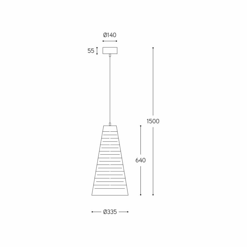 Lampenmessungen Durchmesser 335 x H 640 mm; H insgesamt mit Kabel und stieg 1500 mm