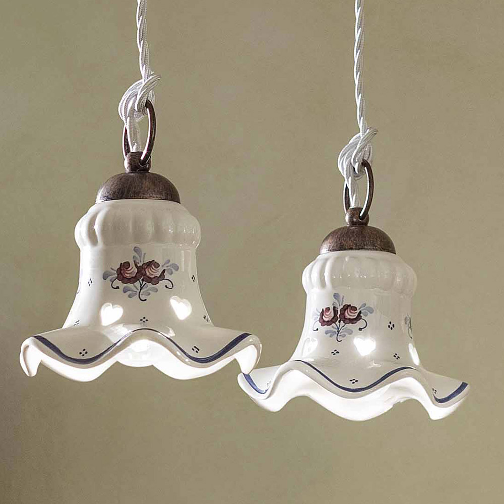 Hängelampe 3 Lichter aus Eisen und handbemalter Vintage-Keramik - Chieti