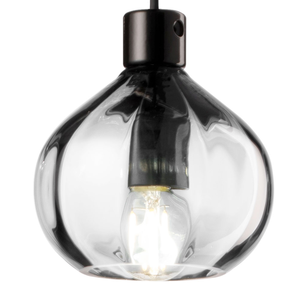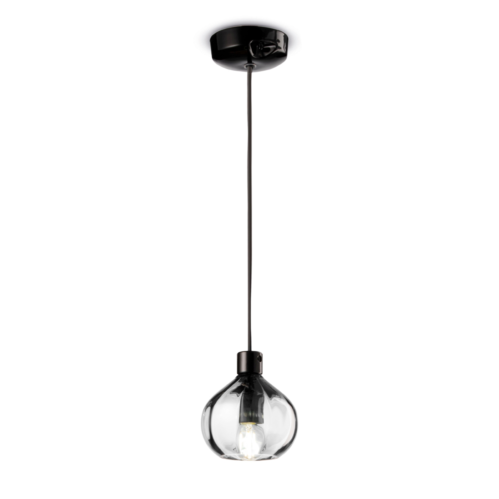 Diese Pendelleuchte ist die Essenz von Transparenz mit einem Hauch von Modernität. Glas mit seiner reinen und zeitlosen Natur wird hier zu einer Kugel geformt, die Licht einfängt und reflektiert und so ein Spiel aus Helligkeit und Schatten erzeugt, das der Umgebung Dynamik verleiht. Die bernsteinfarbene Version mit ihrem warmen und einladenden Farbton eignet sich perfekt für die Schaffung intimer und entspannter Atmosphären. Die transparente Variante hingegen gibt ein kristallines Licht ab, das sich ideal für eine Beleuchtung mit einem Hauch minimalistischer Klasse eignet.