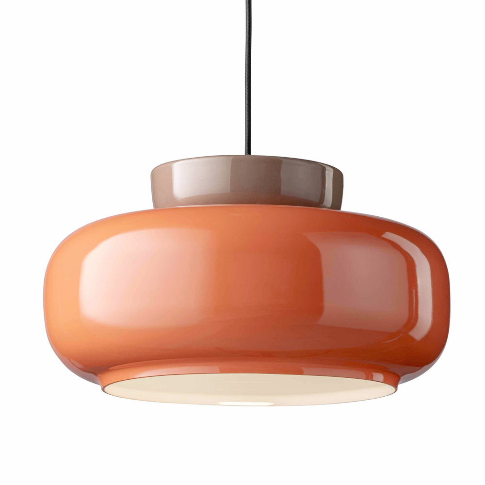 Hängeleuchte aus farbiger Keramik , lackiertem Glasdiffusor und ummanteltem Baumwollkabel, vollständig in Italien hergestellt.