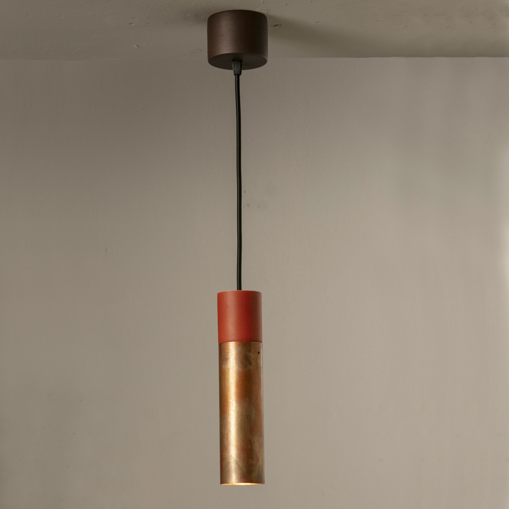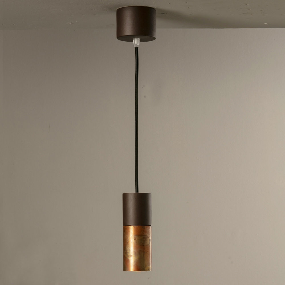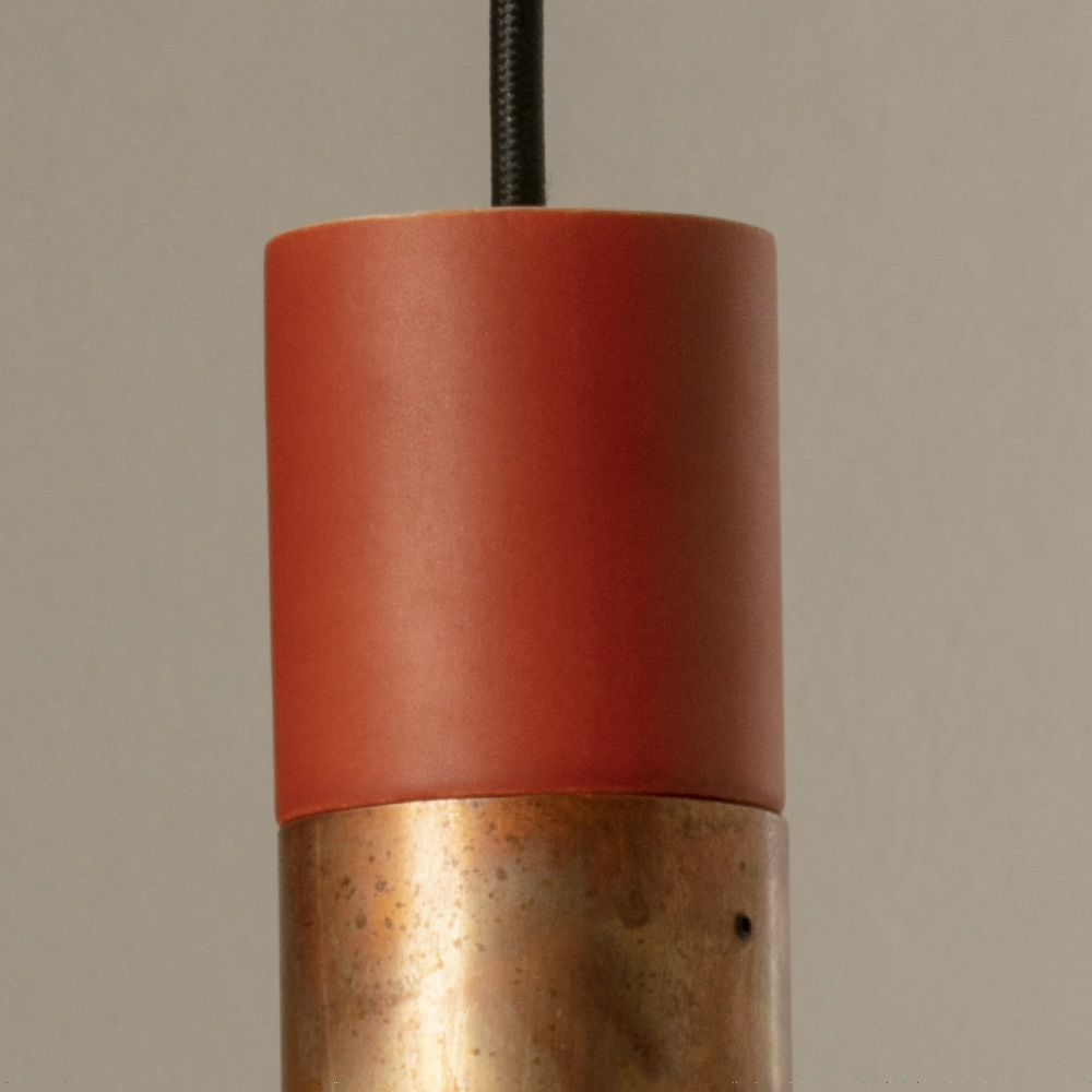 Pendelleuchte aus Keramik und Kupfer, handgefertigt in Italien.