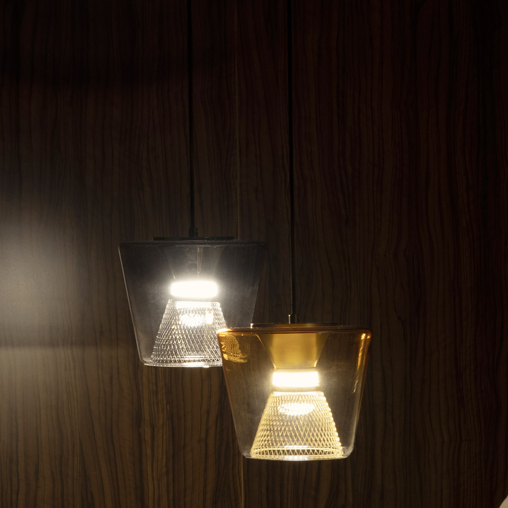 Glas verbindet. Die Verbindung von glattem und bearbeitetem Glas macht es zu einem einzigartigen Stück, das ein Lichtspiel erzeugt, das den Blick fesselt und die Sinne verzaubert. Die verfügbaren Ausführungen verleihen einen Hauch von Klasse und Raffinesse und machen diese Lampe perfekt, um sowohl modernen als auch klassischen Umgebungen einen stilvollen Lichtpunkt hinzuzufügen. Diese