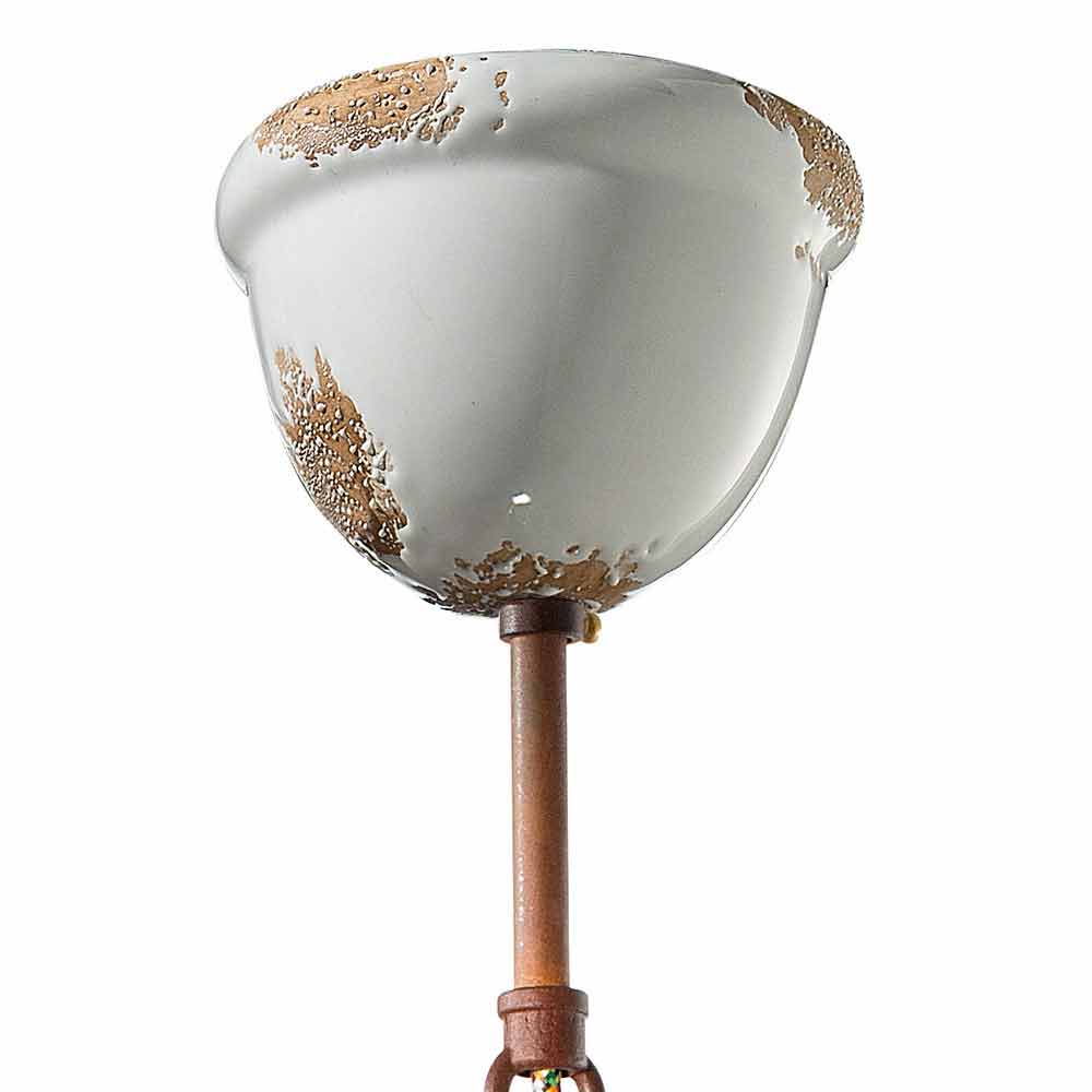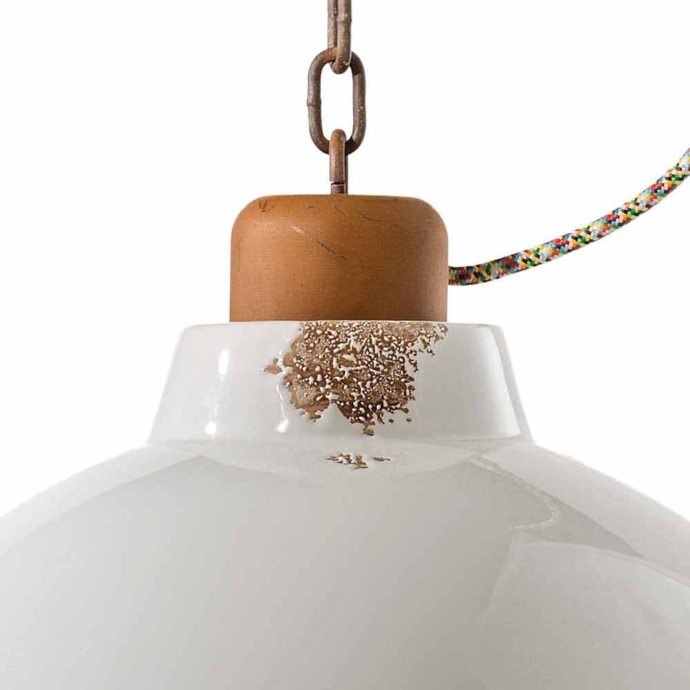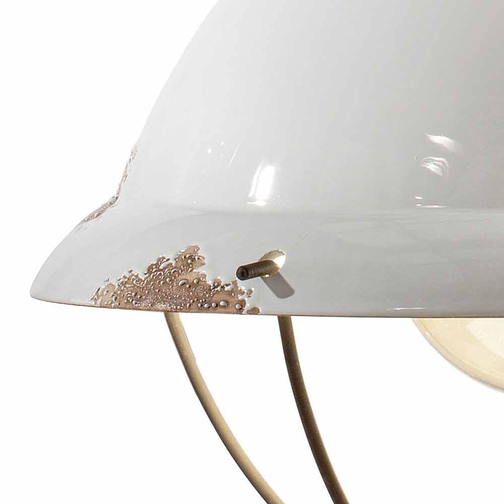 Die Besonderheit dieser Leuchte liegt in der handwerklichen Verarbeitung des Keramikdiffusors. Die Keramik ist in der Tat so dekoriert, als ob die Zeit ihren Weg gezeichnet hätte. Die Reproduktion der Erosion der Zeit in Kombination mit den glänzenden Oberflächen verleihen dieser Aufhängung diesen zusätzlichen Wert. Dieser abgenutzte Effekt verleiht Clara einen raffinierten Vintage-Industrial-Stil. Die Metallstruktur verstärkt den antiken Effekt noch mehr.