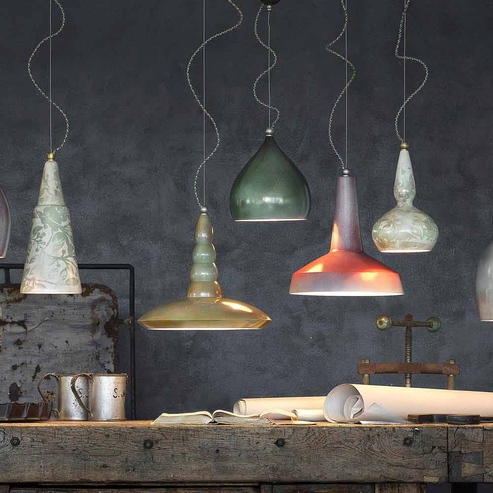 Ferroluce handgefertigte Retro-Pendelleuchte aus Keramik