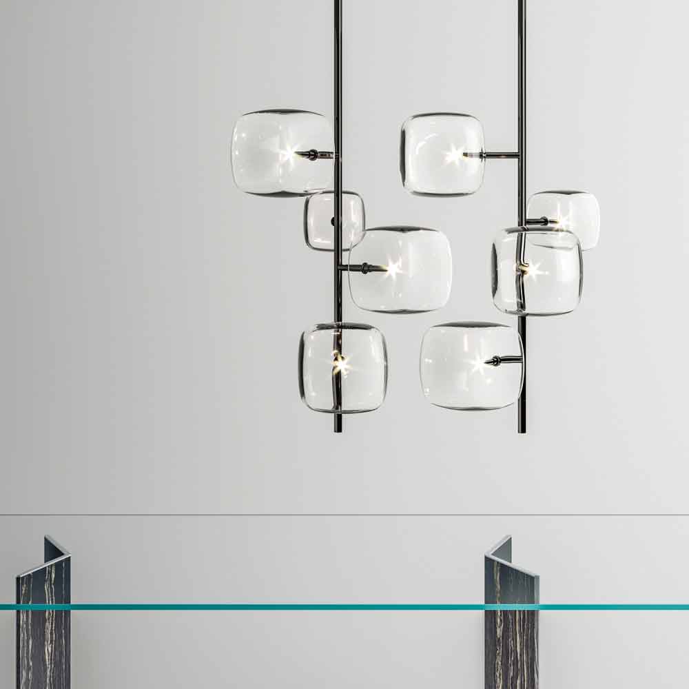 transparentem geblasenem Pyrexglas . Ideal auch für mehrere Installationen in unterschiedlichen Höhen, wodurch das Produktdesign