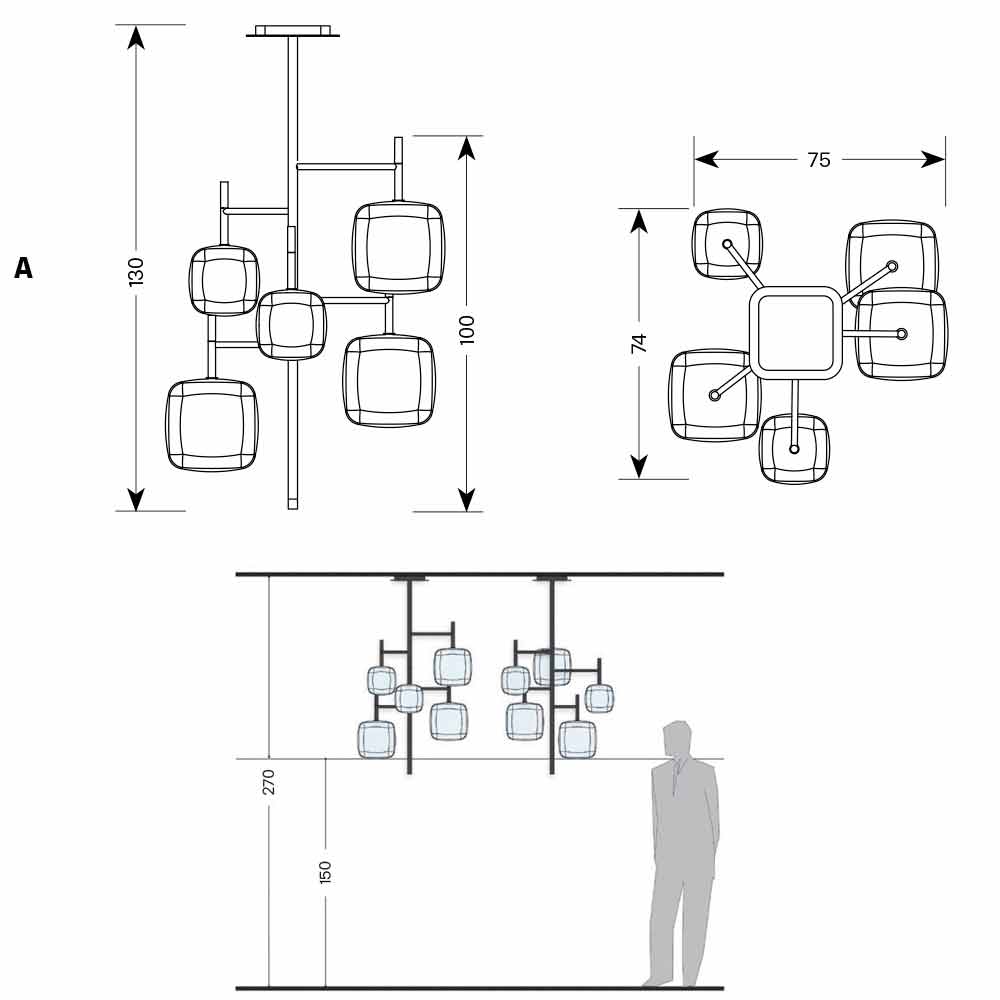 - L 75 x P 74 x H 130 cm (5 Würfel);