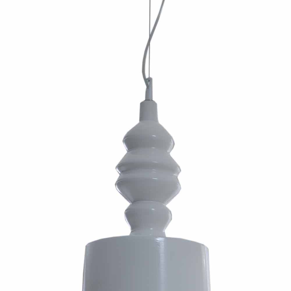Die Lampe ist aus glänzend weiß Keramik als Material, das den Ursprung darstellt, die Formbarkeit, die Schaffung und das führt direkt zu den Ursprüngen unserer Kultur.