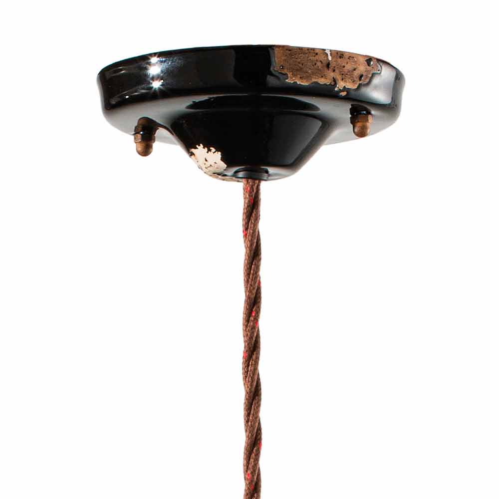 Das Merkmal der Einzigartigkeit liegt in der Verarbeitung und Veredelung der Keramikteile, die so dekoriert sind, als hätte die Zeit ihren Weg gezeichnet. Die Reproduktion der Erosion der Zeit in Kombination mit den glänzenden Oberflächen verleihen dieser Aufhängung diesen zusätzlichen Wert.