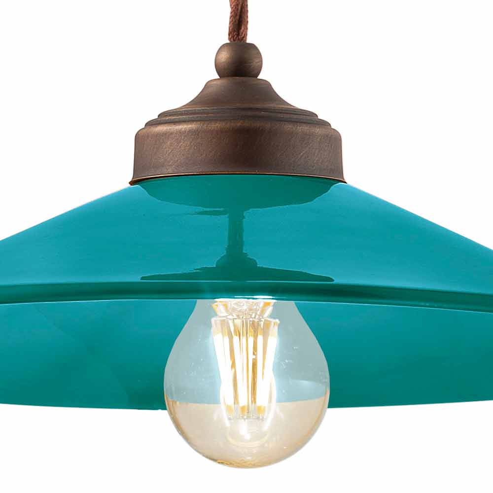 Diese wunderschöne Pendelleuchte besteht aus einer antiken Messingstruktur mit einem Diffusor aus glänzend farbiger Keramik, erhältlich in verschiedenen Farben.