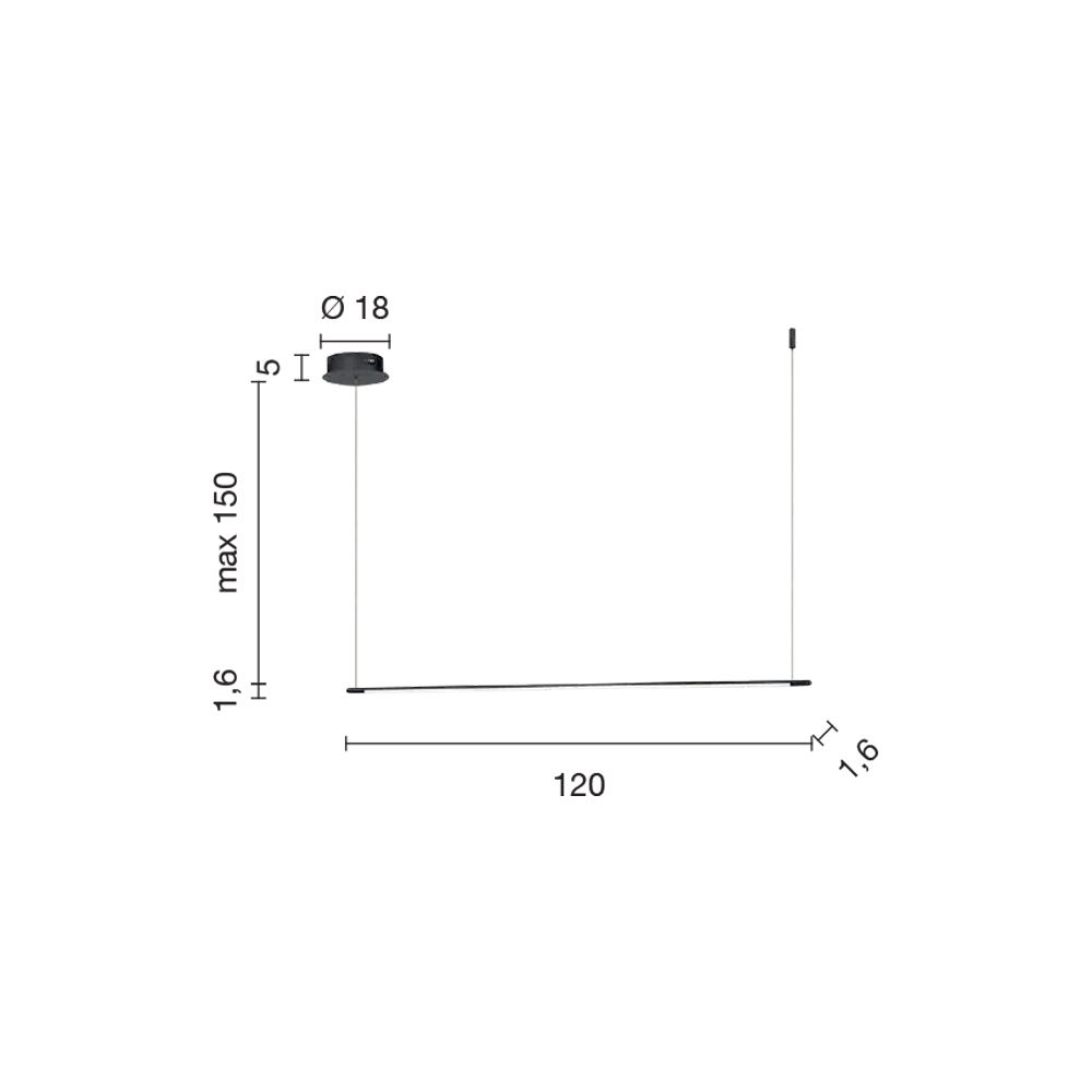 Länge: 120 cm x Tiefe: 1,6 cm x Höhe 1,6 cm