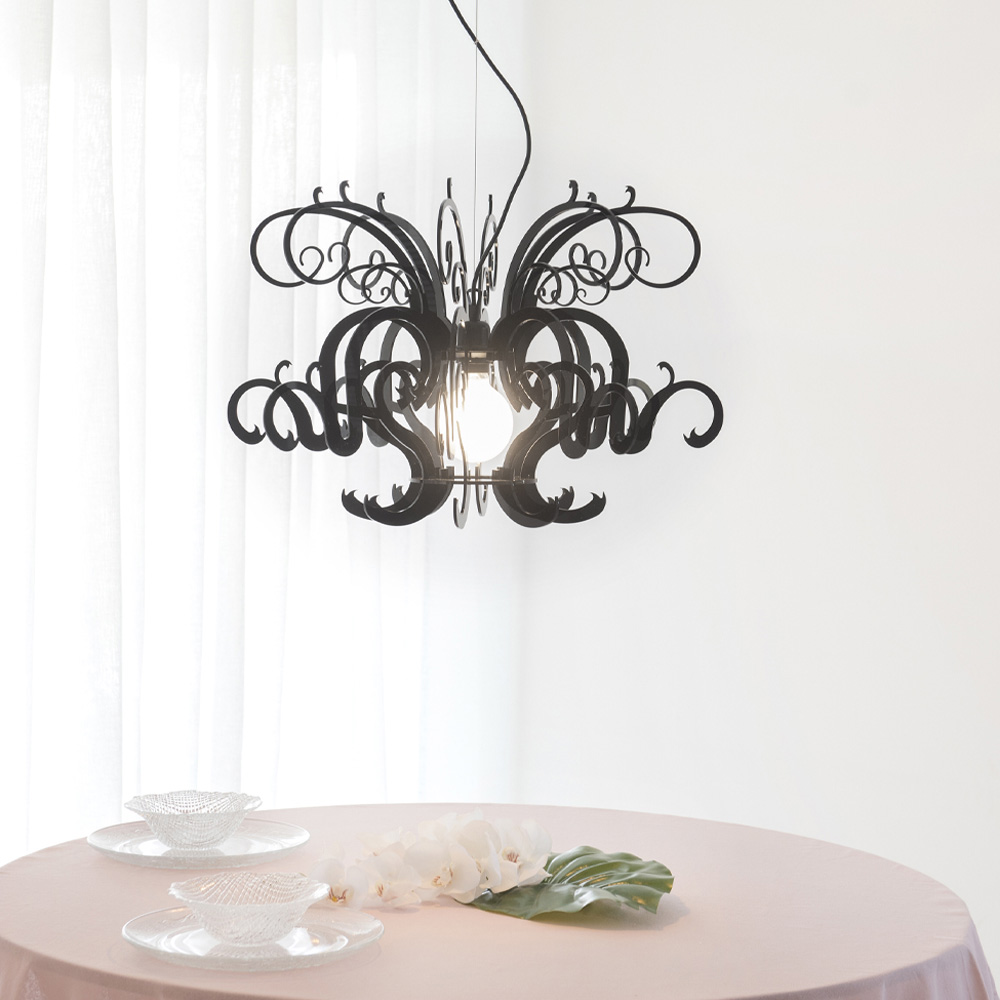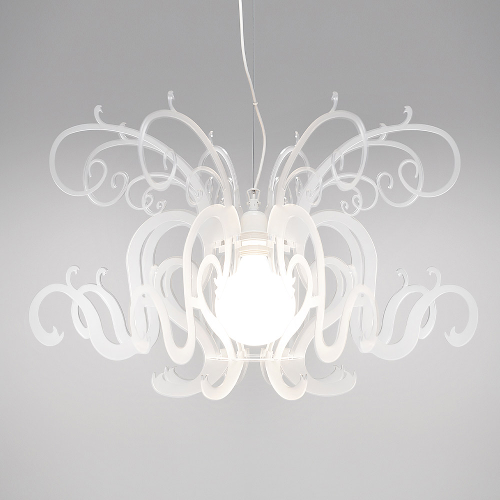 Pendelleuchte aus recycelbarem schwarzem oder weißem Plexiglas made in Italy.