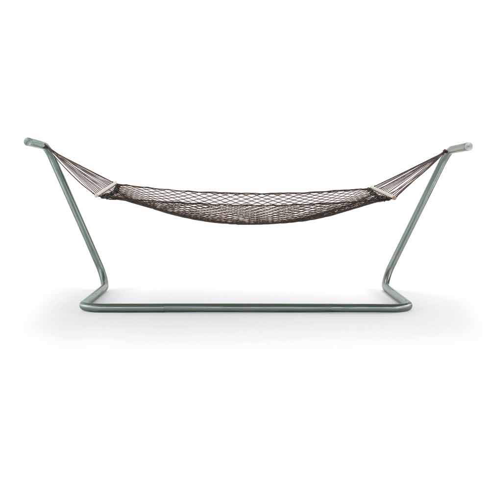 Hängematte im schwarzen Gartennetz mit Sockel, modernes Design made in Italy.
