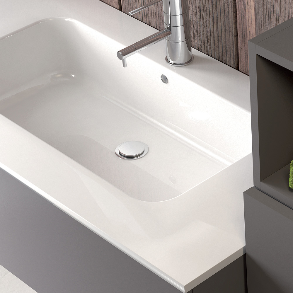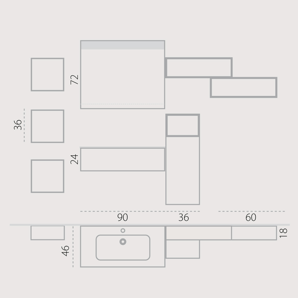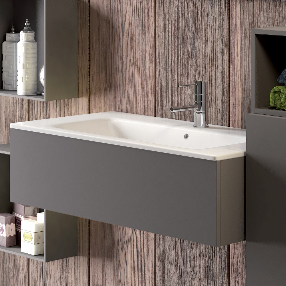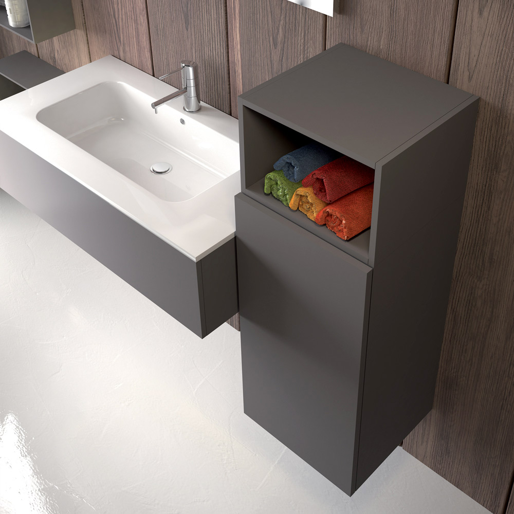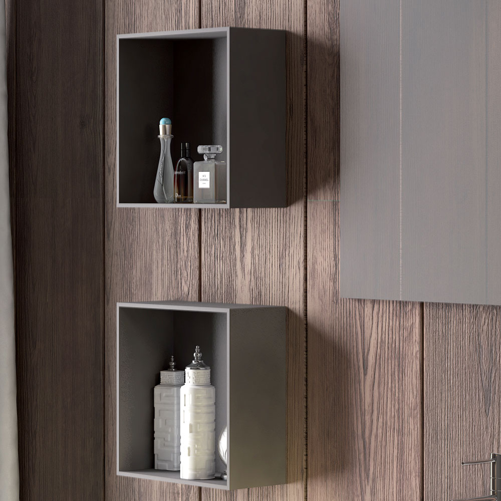 Napoli ist eine Reihe hängender Badezimmermöbel, die aus verschiedenen Materialien und Ausführungen bestehen und dank der verschiedenen Elemente unzählige Kombinationsmöglichkeiten bieten, um flexible Geometrien für ein Badezimmer außerhalb der üblichen Muster zu schaffen.