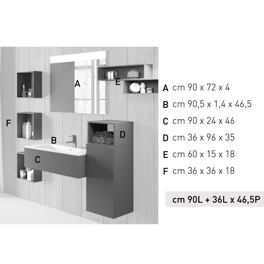 Hängende Badezimmerkomposition aus rauchgrauem Fenix, hergestellt in Italien, Neapel