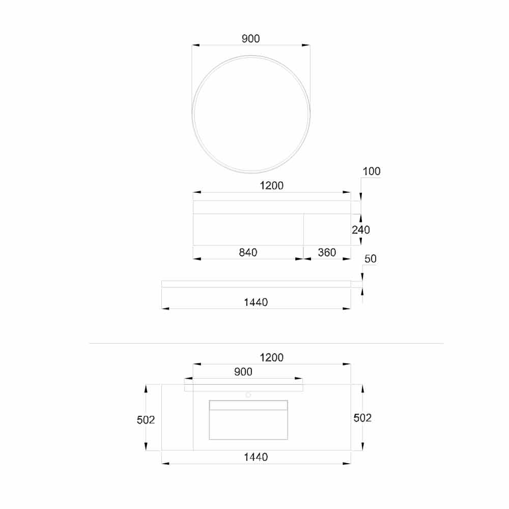 Die Zusammensetzung umfasst:- Waschtischunterschrank und Platte mit integriertem Waschbecken cm L120x50,2x h 34,