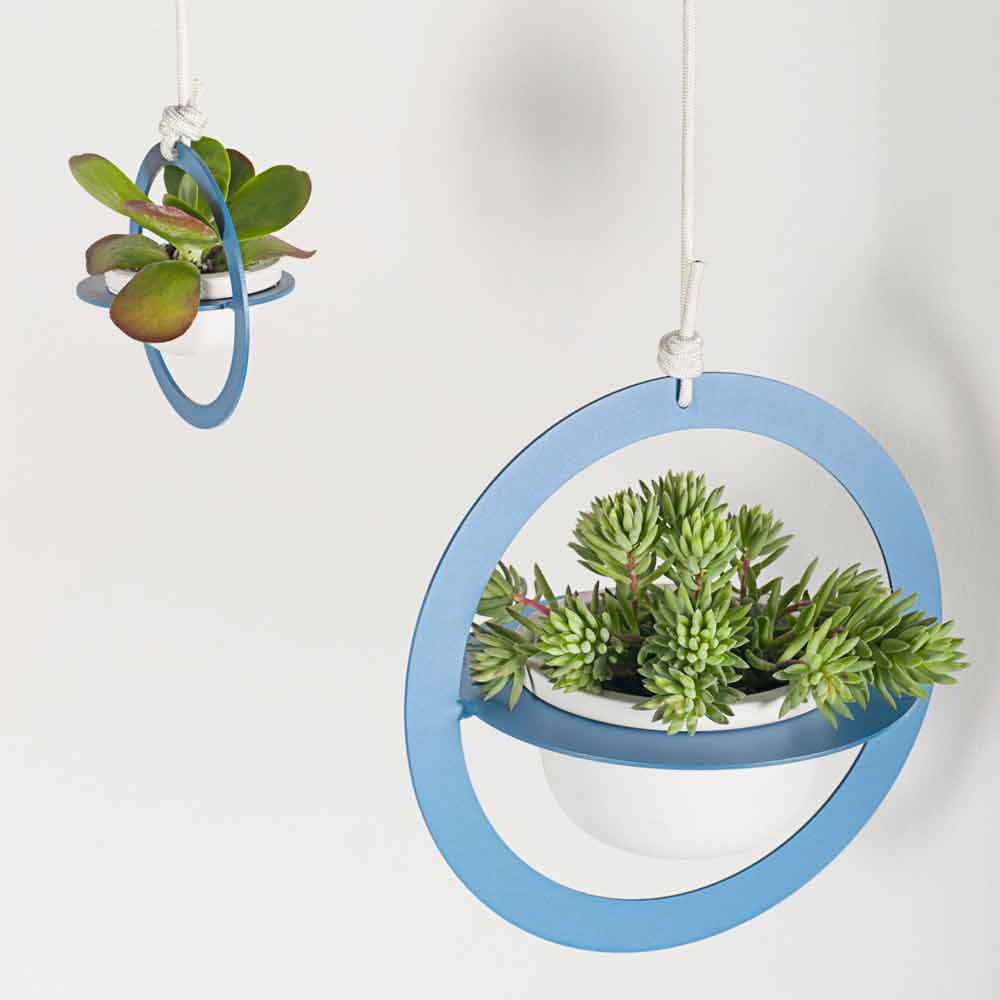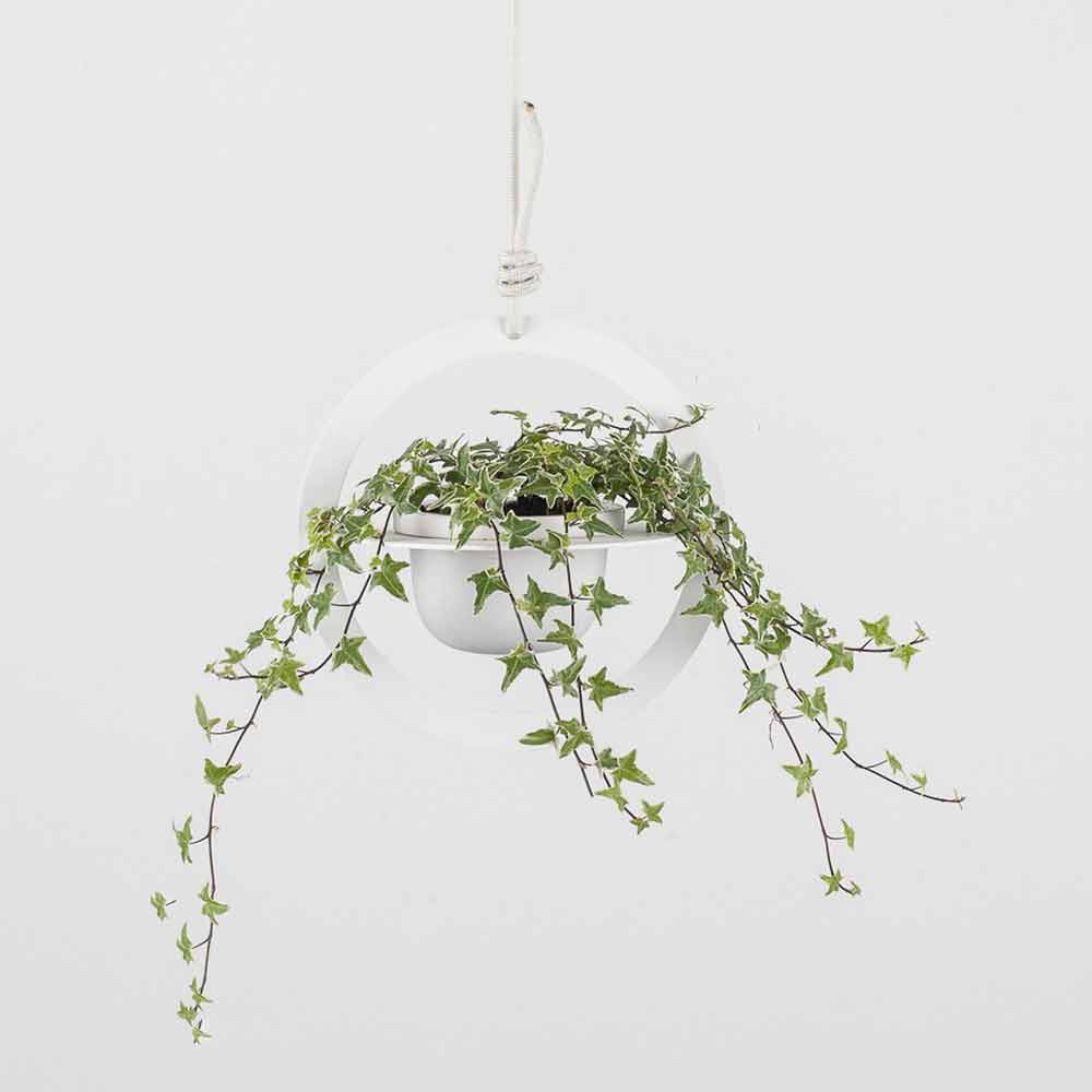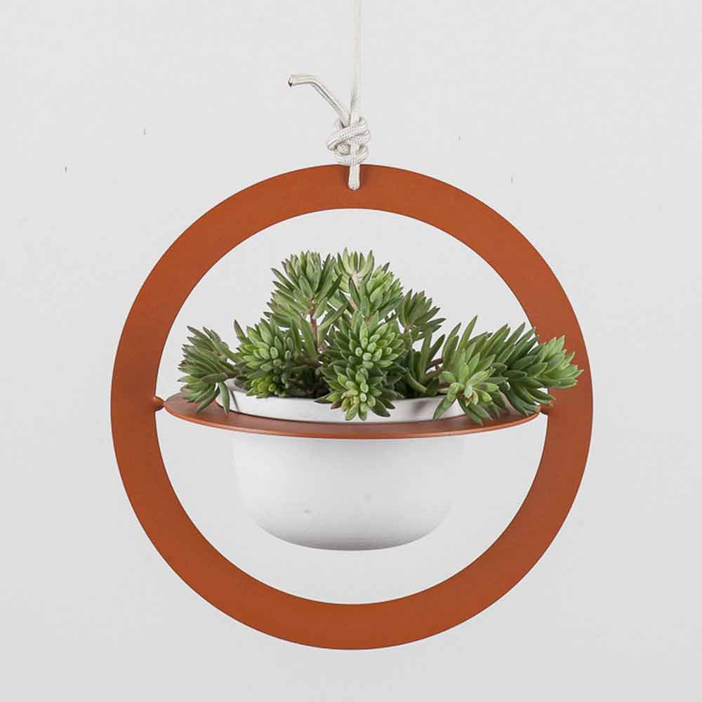 Hängender Blumentopf aus Stahl und Keramik im Design Made in Italy.