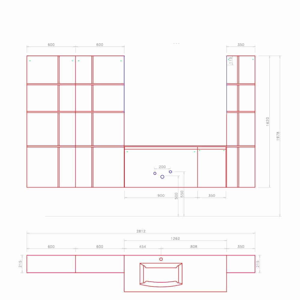 HPL-Fronten: in Holzpartikeln th. 16 mm V100 in Klasse E1 mit ABS-Kante