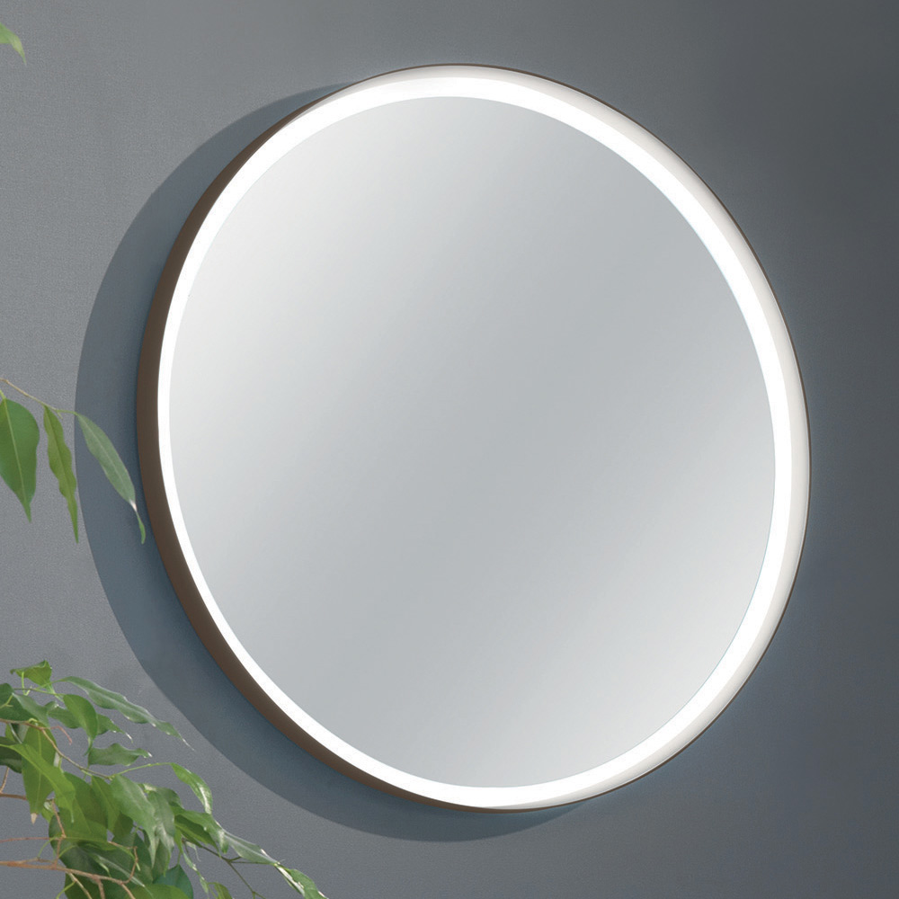 Am Ende des funktionalen Designs steht das Gesamtöffnungssystem mit Push & Pull-System und der runde Spiegel mit außenliegender Sandstrahlung und umlaufend integrierter LED-Beleuchtung , kombiniert mit einem matt patinierten bronzefarben lackierten Metallrahmen.