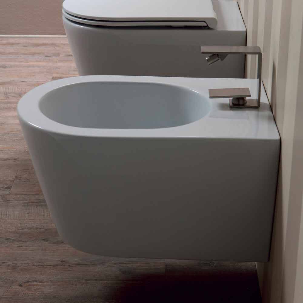 Hängendes Bidet aus Keramik, Design Sun Round 57x37cm, made in Italy
