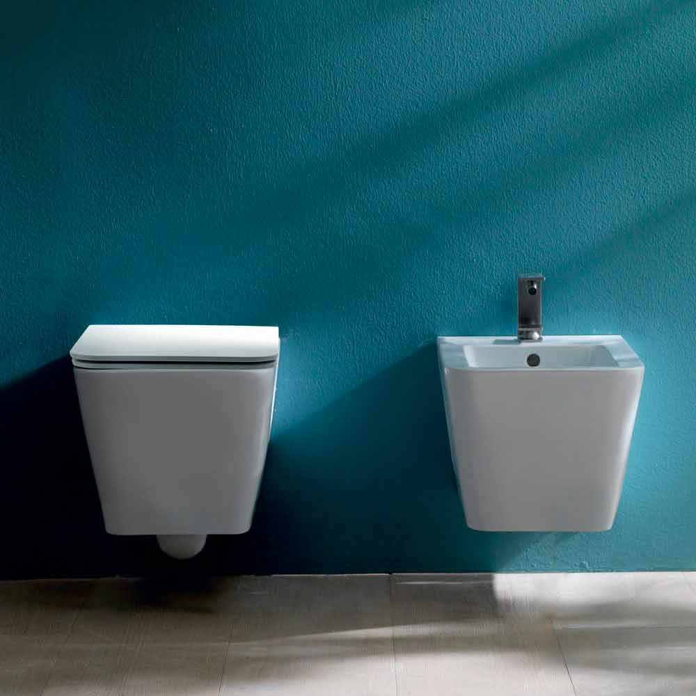 Wandhängendes Design-Bidet aus Keramik Sun Square 55x35cm, hergestellt in Italien